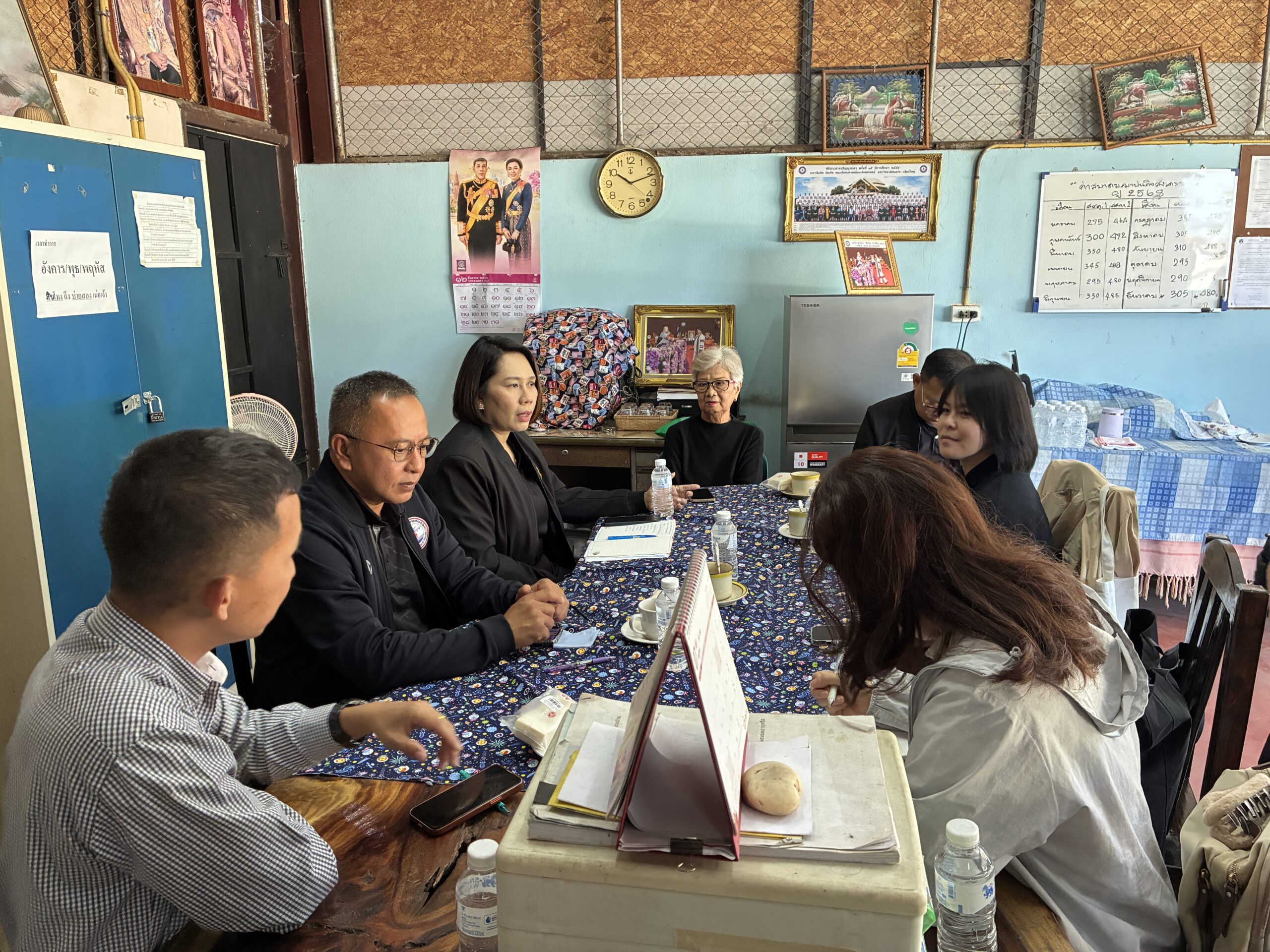 午前中は、ブワックペット・クレジットユニオン協同組合を訪問しました。同組合は225名のメンバーを擁し、約400万バーツの資金を積み立てるなど、長年にわたり安定した活動を継続しているグループです。一方で、メンバーの高齢化や新規加入者の減少により、新たな活動の展開が停滞していることが課題として挙げられました。また、借入金の返済が予定通りに行えないメンバーが増加傾向にあることから、今後の対応策について検討が必要であるとの意見が共有されました。